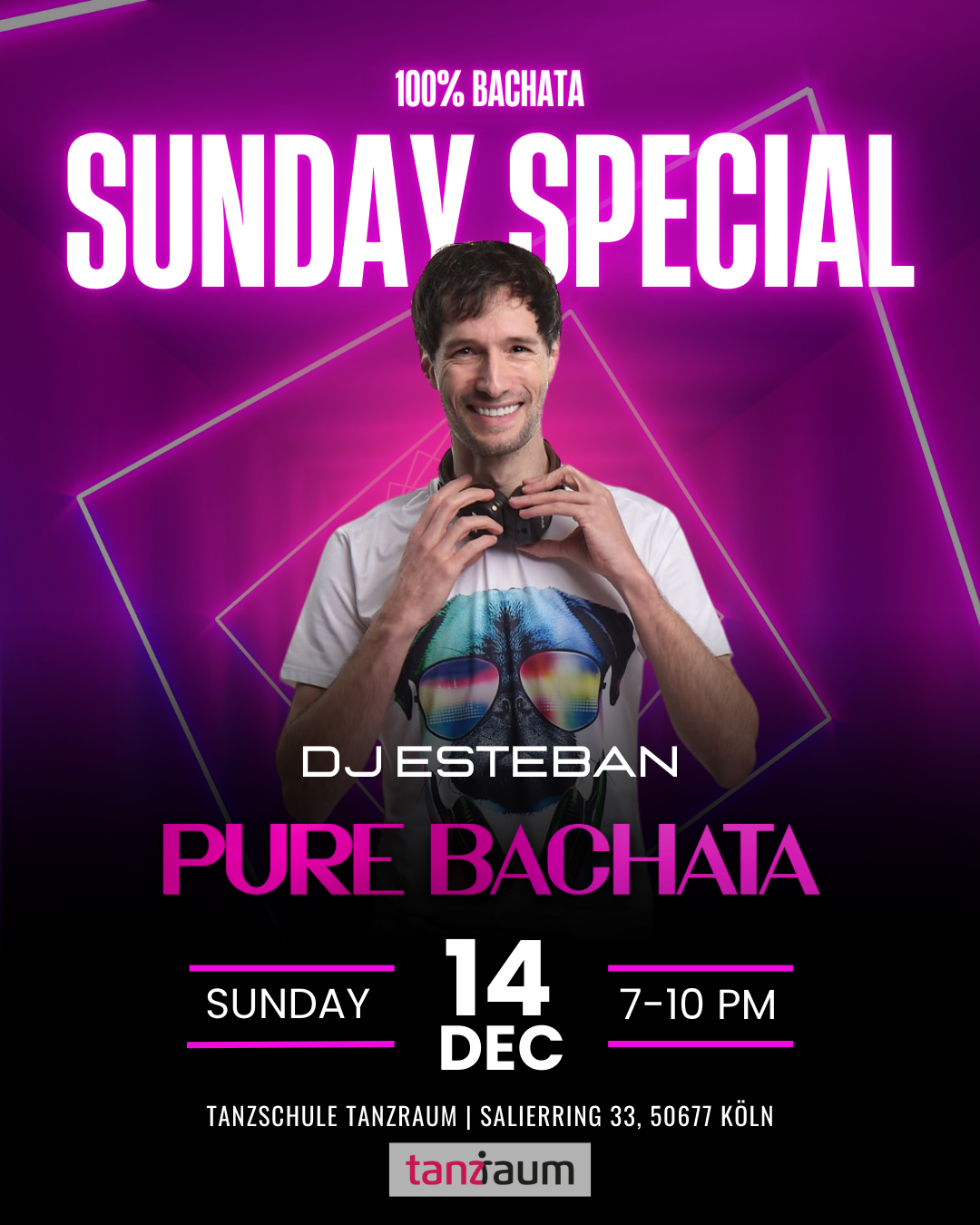 Am Sonntag, 14.12., heißt es: 100% Bachata, 0% Workshops – einfach tanzen!